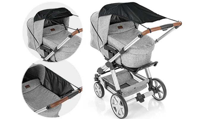 Az univerzális napfényvédő előnye, hogy bármilyen babakocsira, hordozóra könnyen rögzíthető és bármikor a nap helyzetéhez igazítható. A 99%-os UV védelme biztosítja, hogy gyermekét a lehető legkevesebb UV terhelés érje séta közben. ( Ettől függetlenül a napfényvédő krém használata ajánlott!) Rögzítése a kupolához gumival történik, majd a madzagokkal a fogantyúk kívánt oldalára.